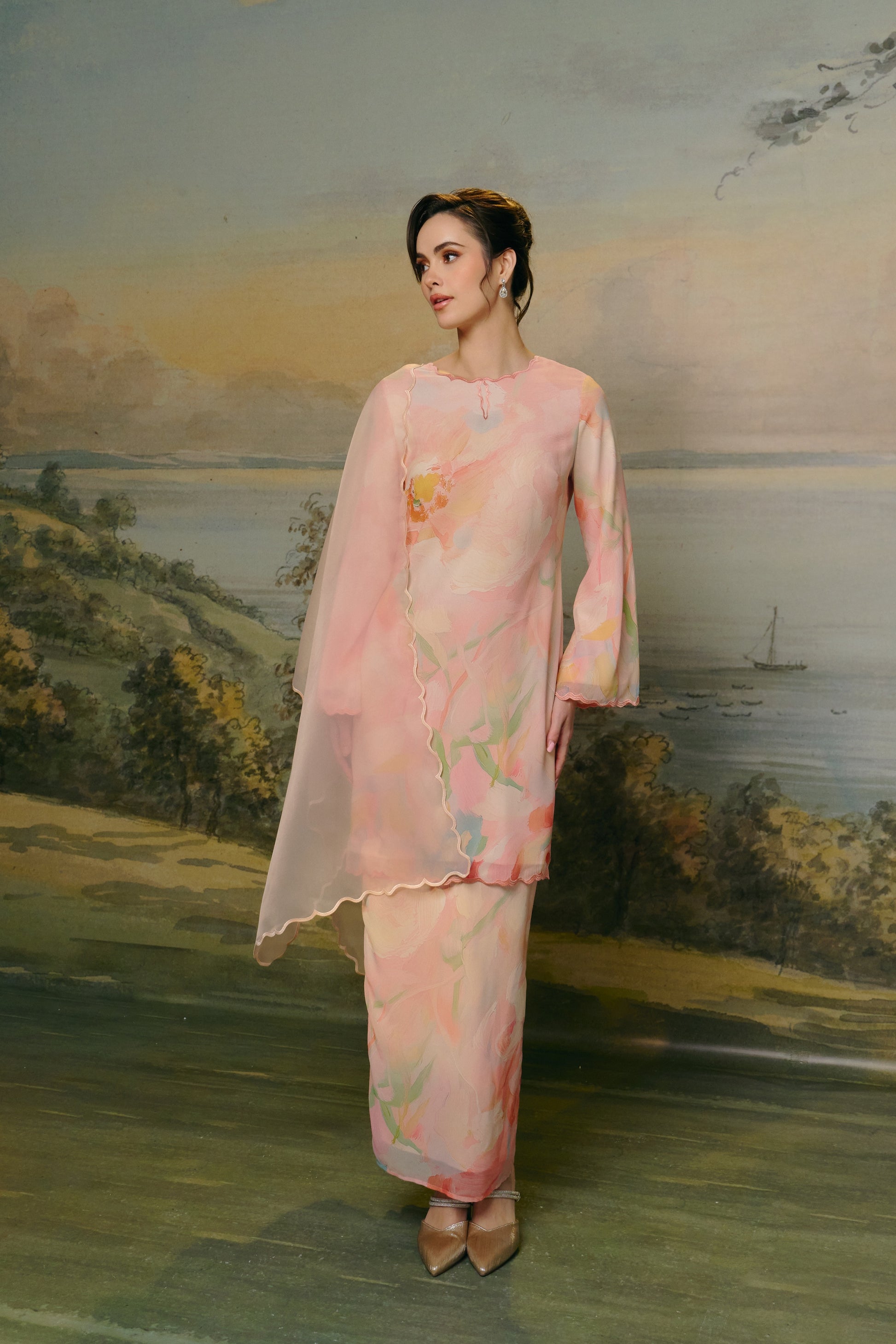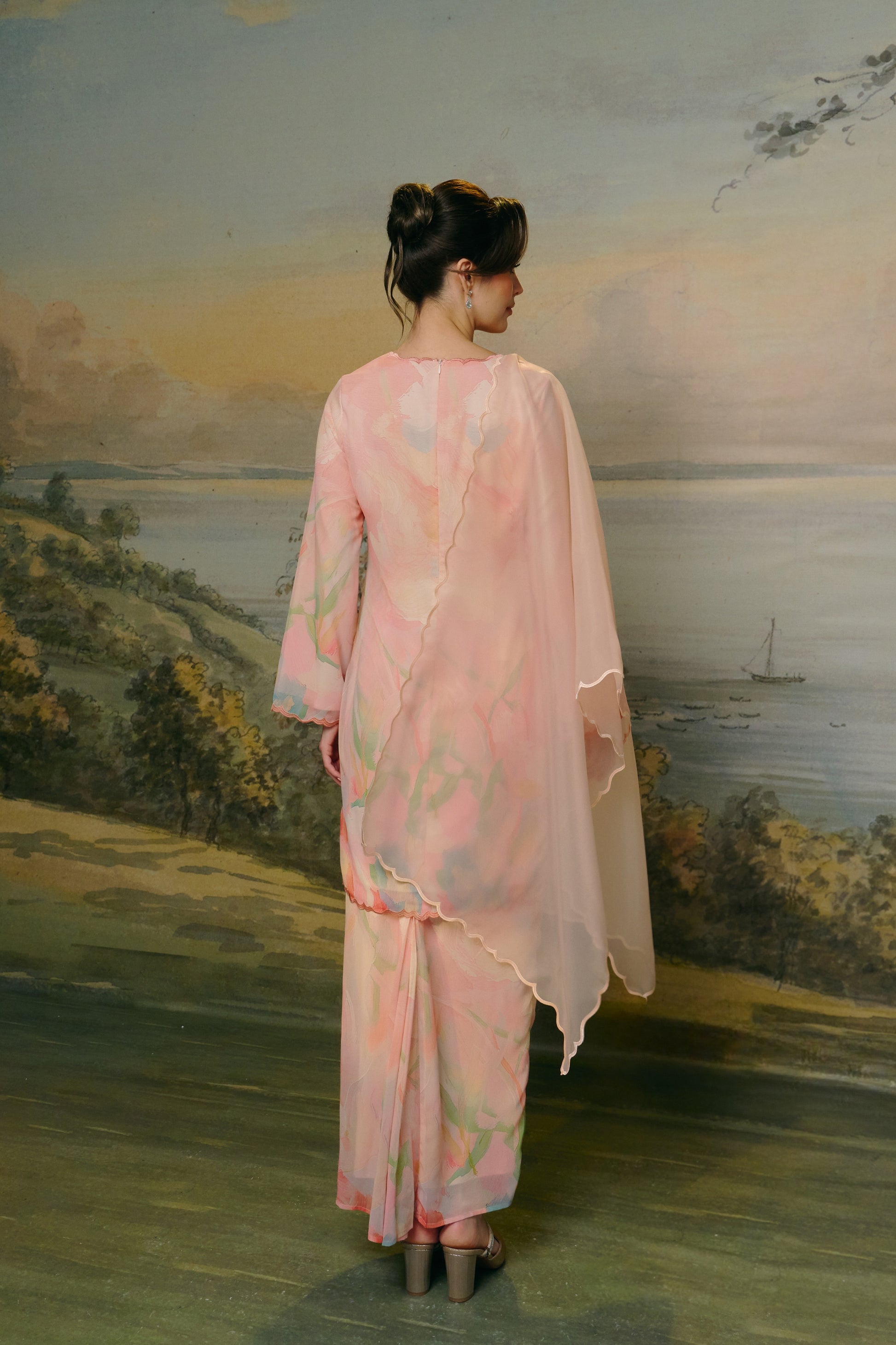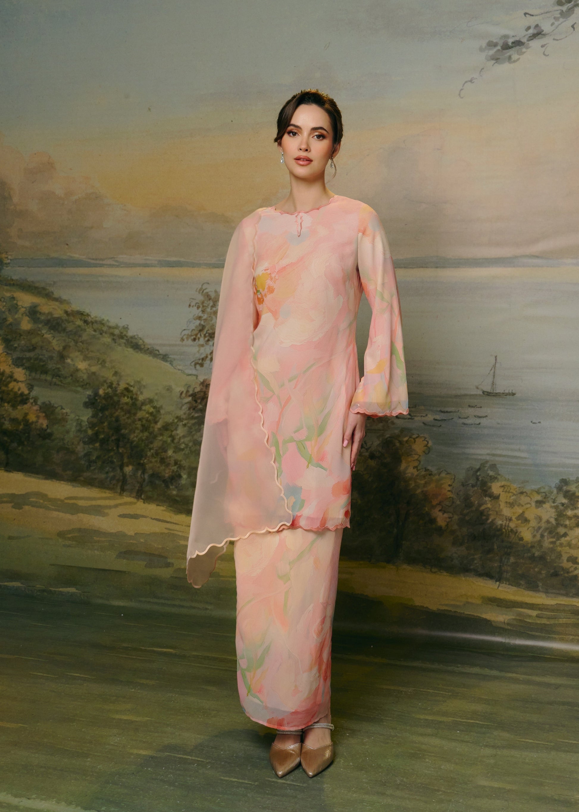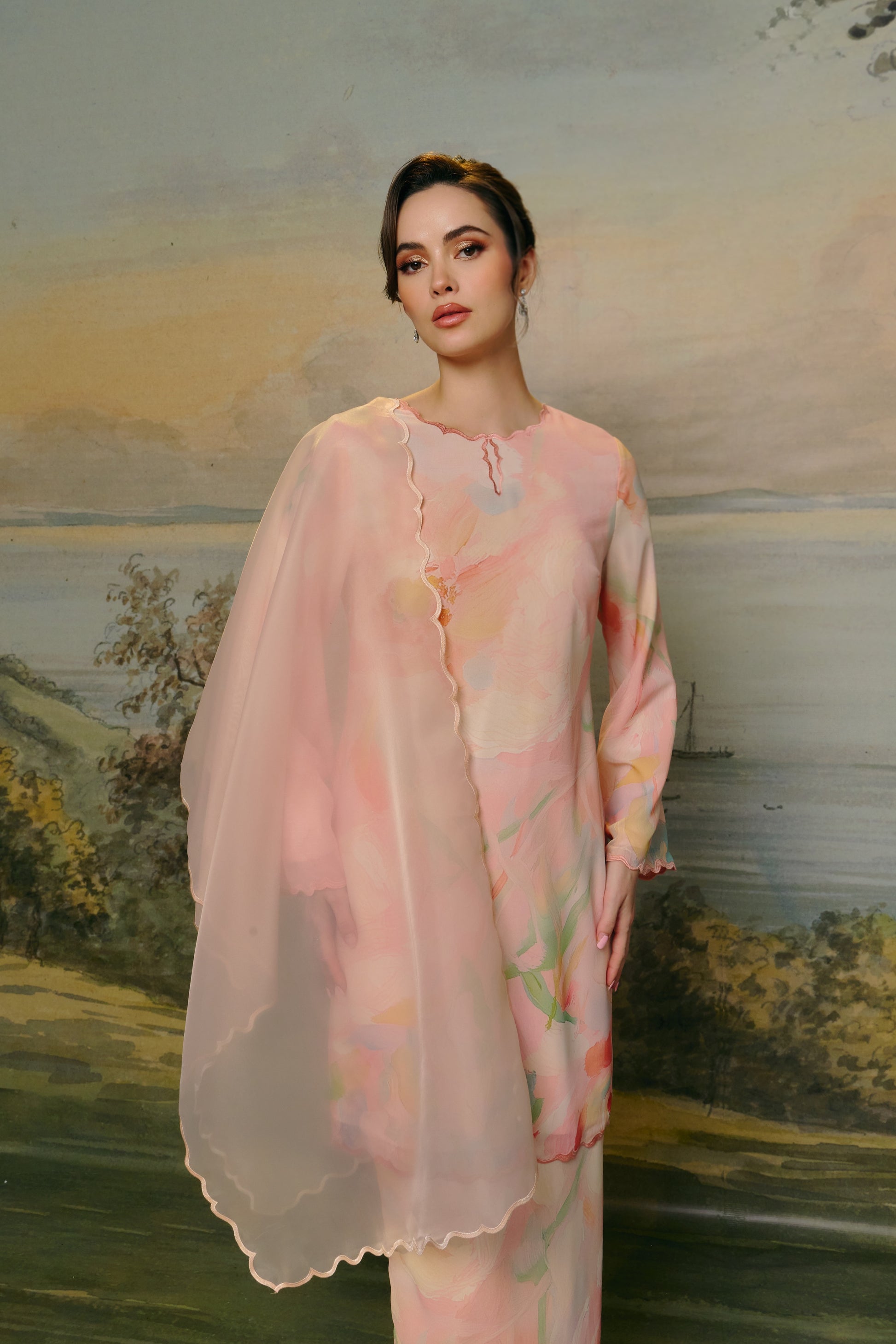 - Made from soft chiffon silk with watercolor-inspired print