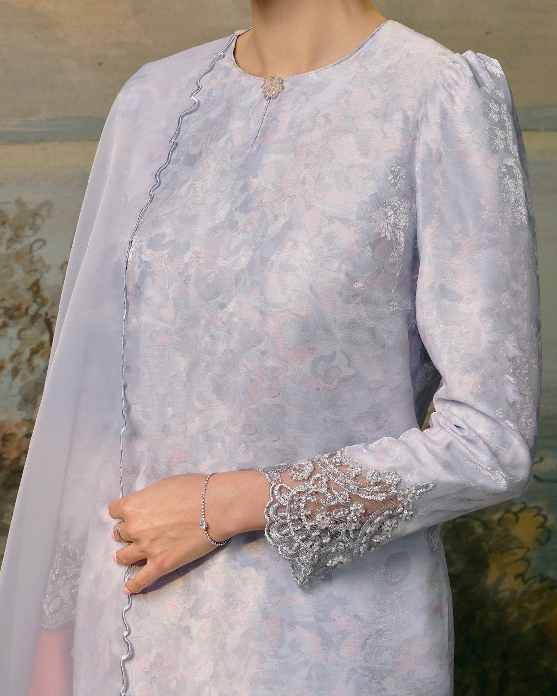 - Premium beaded lace on the wrists